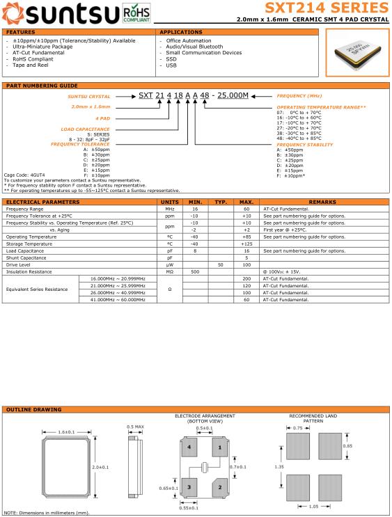 | 26.000MHz ~ 40.999MHz | 100 | AT-Cut Fundamental. | ||||
