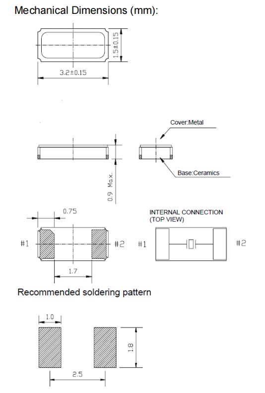 TST無源晶振TZ1006AE,32.768K石英晶體諧振器,3215貼片晶振,尺寸圖