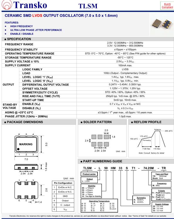 | OUTPUT | LOGIC FAMILY | LVDS |
