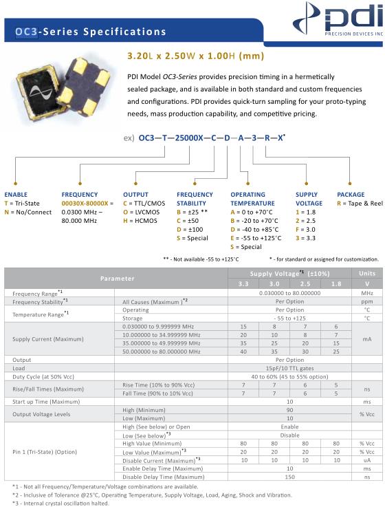 威爾威晶振,OC3晶振,OC3-T-26000X-C-D-A-3-R-X晶振,小型SMD有源晶振,從最初超大體積到現(xiàn)在的7050mm,6035mm,5032mm,3225mm,2520mm體積,有著翻天覆地的改變,體積的變小也使產(chǎn)品帶來了更高的穩(wěn)定性能,接縫密封石英晶體振蕩器,精度高,覆蓋頻率范圍寬的特點,SMD高速自動安裝和高溫回流焊設(shè)計,Optionable待機輸出三態(tài)輸出功能,電源電壓范圍:1.8V~5V,高穩(wěn)定性,低抖動,低功耗,主要應用領(lǐng)域:無線通訊,高端智能手機,平板筆記本W(wǎng)LAN,藍牙,數(shù)碼相機,DSL和其他IT產(chǎn)品的晶振應用,三態(tài)功能,PC和LCDM等高端數(shù)碼領(lǐng)域,符合RoHS/無鉛.