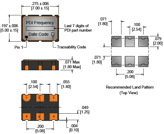 Wi2wi低抖動晶振,PE7-T-65000X-M-C-E-2-R-X,石英晶體振蕩器,尺寸圖