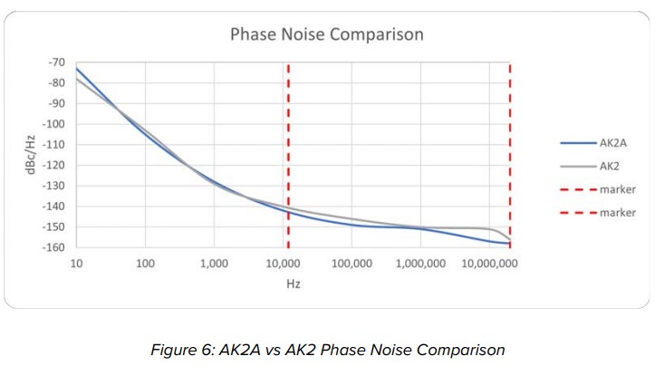 Table 4: AK2A vs AK2 RMS Phase Jitter (Vdd = 3.3V, Typical)