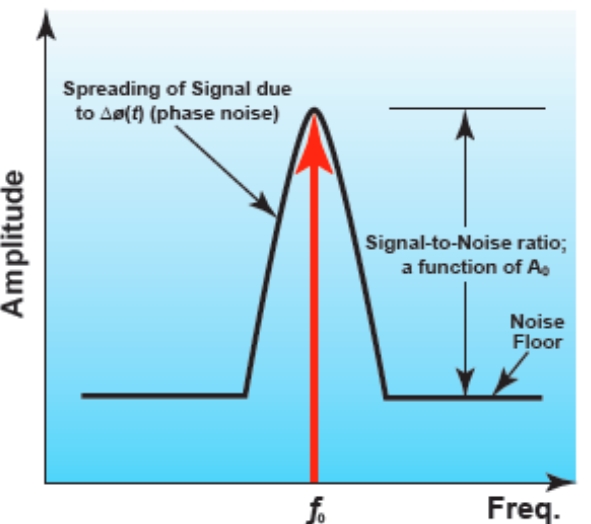 上圖中,δφ()t是相位噪聲,但A0將建立 信噪比。圖1說明了這一點。
