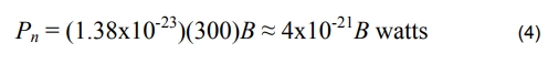 等式2給出了熱噪聲的幅度,并且 代入K和T,我們得到: