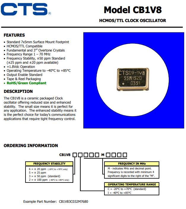更多>>CTS高性能的時鐘振蕩器CB1V8-3I-30M0000具備多元化解決方案