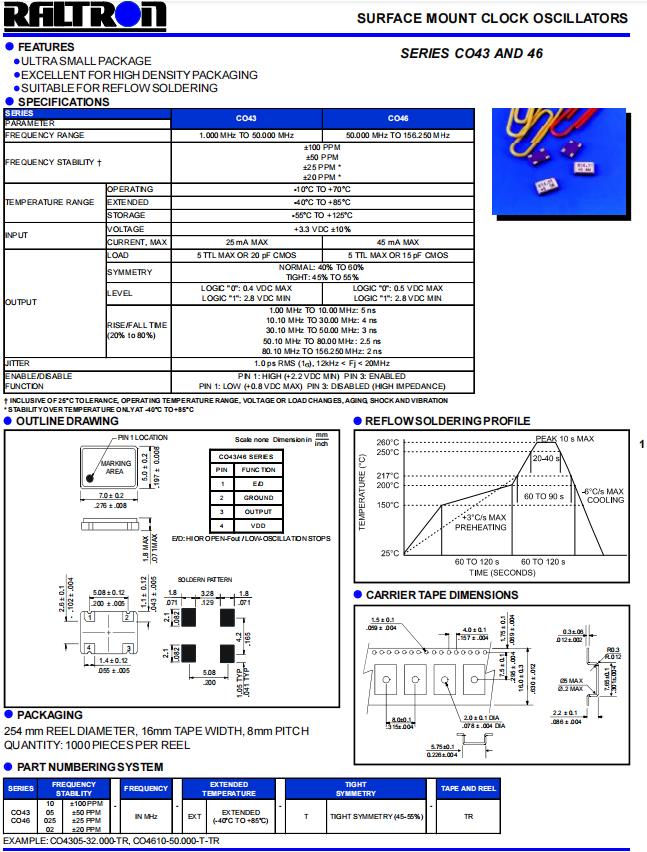 | CO43 系列 10.016 MHz 7 x 5 mm 3.3 V ±100 ppm 表面貼裝 時鐘振蕩器 | ||||||