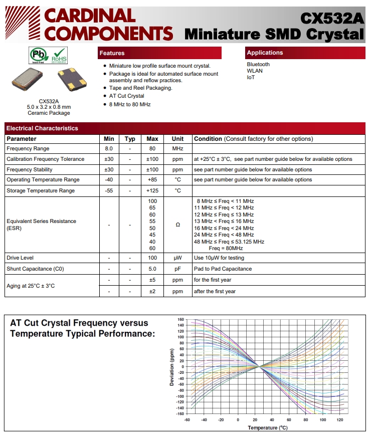 | CX532Z-A5B3C5-70-12.0D18 | Cardinal晶振 | CRYSTAL 12.0000MHZ 18PF SMD | CX532 | 12MHz | ±30ppm | -20°C ~ 70°C |
