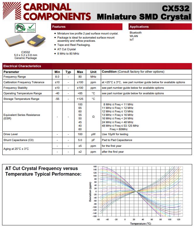 更多>>物聯網應用最理想的選擇是Cardinal石英晶體CX532Z-A1B3C2-45-40.0D18