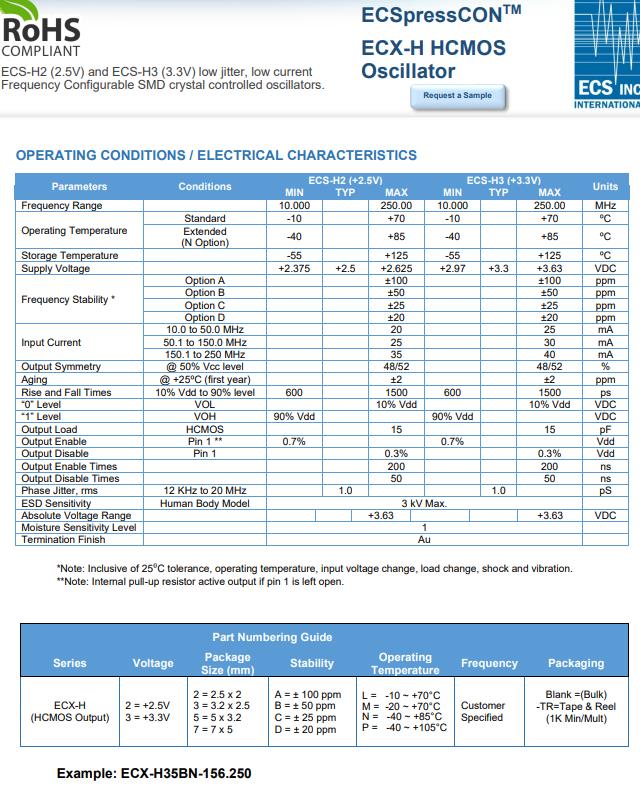 | ECX-H25BN-250.000 | ECS晶振 | ECSpressCON™ ECX-H | 250MHz | -40°C ~ 85°C |