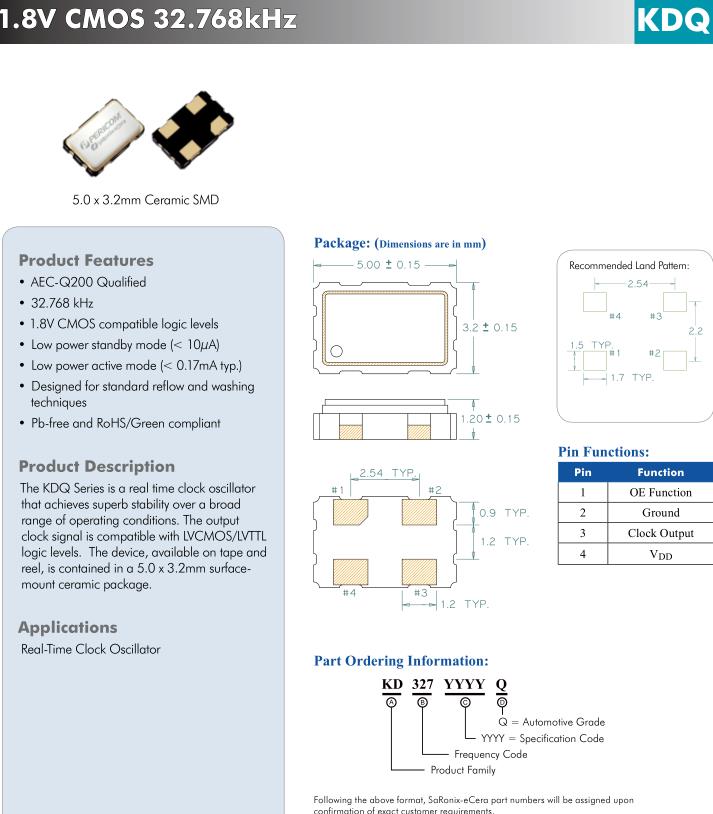 KDQ系列是一款實時時鐘振蕩器這在廣闊的土地上實現(xiàn)了極好的穩(wěn)定性操作條件的范圍。輸出時鐘信號兼容LVCMOS/LVTTL邏輯水平。設備,可在磁帶和卷軸,是包含在一個5.0 × 3.2mm的表面-陶瓷封裝。