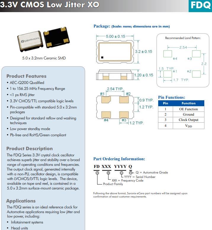 FDQ 系列是需要低抖動和低功耗的汽車應用的理想參考時鐘
