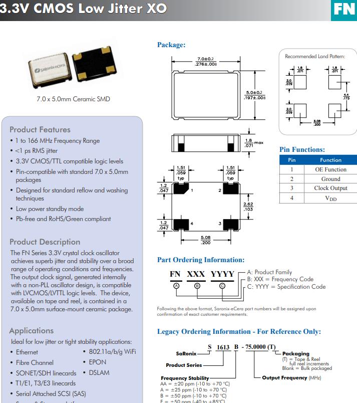 | FN6400019 | Diodes晶振 | SaRonix-eCera™ FN | 64MHz | ±50ppm | -40°C ~ 85°C |
