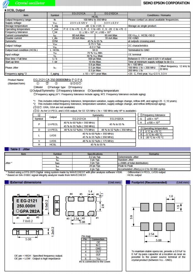 | Q3805CA10012400 | EG-2121CA | 125.000260 MHz | 7.00 x 5.00 x 1.20 mm | LVDS | 2.375 to 2.625 V | 0 to 70 °C |