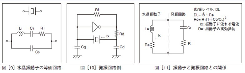負荷容量(CL)は、振動子を発振回路で使う條件として決めるためのもので、発振回路において振動子の両端子から 発振回路側を見た実効的な直列等価靜電容量で表されます(図[12]參照)。