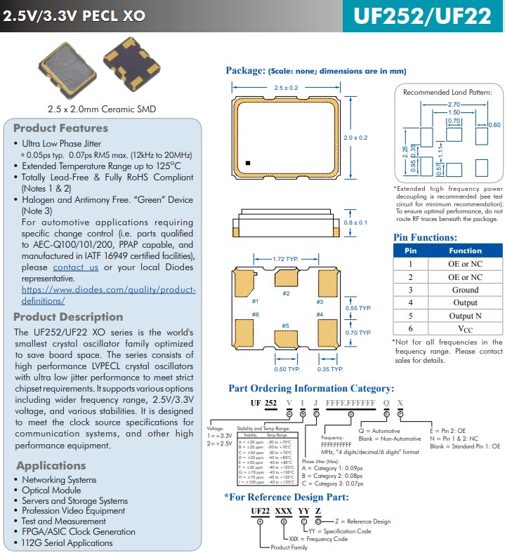 更多>>UF252/UF22系列具有超低抖動性能的高性能LVPECL晶體振蕩器組成