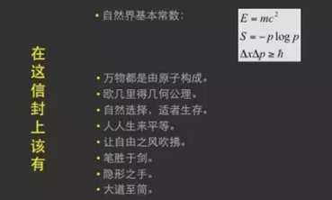 張首晟曾在一場演講會上說幾句話便可結合人類的所有知識,那便是【萬物都是由原子構成;歐幾里得幾何公理;自然選擇.適者生存;人人生來平等;讓自由之風吹拂;筆勝于劍;隱形之手;大道至簡”】張首晟說,千年思想,最最精華的都是大道至簡,你看宇宙美妙在哪兒?E=MC2這樣一個公式,能夠描寫小到原子,大到宇宙.所以,真理的共通點就是“大道至簡”.