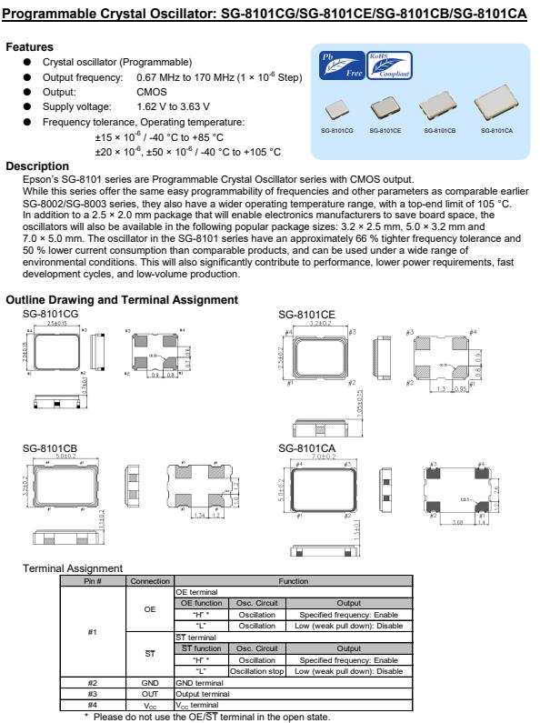 | X1G005191003400 | SG-8101CA | 40.960000 MHz | 7.00 x 5.00 x 1.40 mm | CMOS | 1.620 to 3.630 V | -40 to 105 °C |