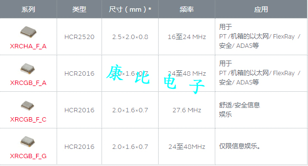 | XRCPB24M000F0Z00R0 | HCR2016 | 24.0000MHz | ±100ppm max. (25±3℃) | 工業級 |