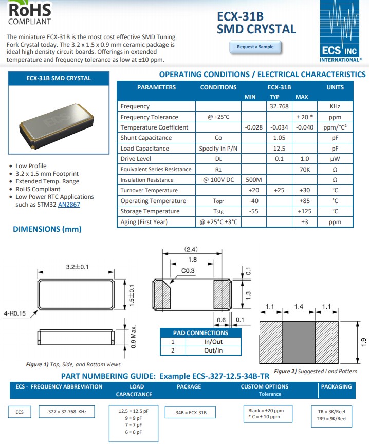 ECS伊西斯ECX-31B時鐘晶振,ECS-.327-7-34B-TR石英晶體,ECS-.327-7-34B-C-TR,32.768K晶振,參數(shù)圖