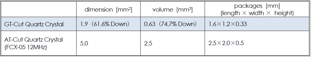 GT-cut石英晶體單元最初是在20世紀(jì)40年代作為具有卓越頻率-溫度特性的部件開發(fā)的,它在毛坯制造方面提出了挑戰(zhàn),限制了體積生產(chǎn)。另一方面,AT-cut石英晶體單元近年來出現(xiàn)了向支持更高頻率以響應(yīng)更小封裝的趨勢,產(chǎn)生對更小封裝的需求,在較低MHz頻率下工作的低功率單元。