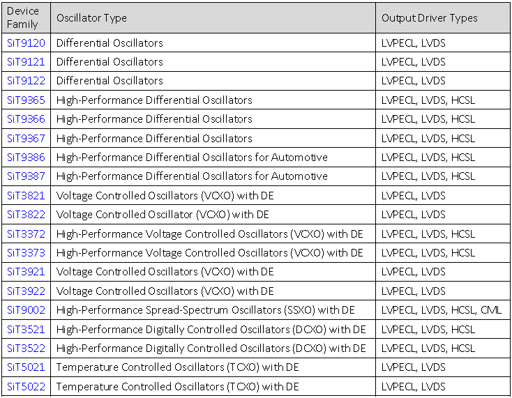 差分晶體振蕩器用于高性能應用,并提供多種優勢,如對電源噪聲的更高魯棒性.本應用筆記為表1中列出的SiTime差分振蕩器系列提供了端接建議,包括LVPECL,LVDS或HCSL輸出驅動器.還討論了用LVPECL輸出驅動CML或HCSL時鐘輸入的接口.