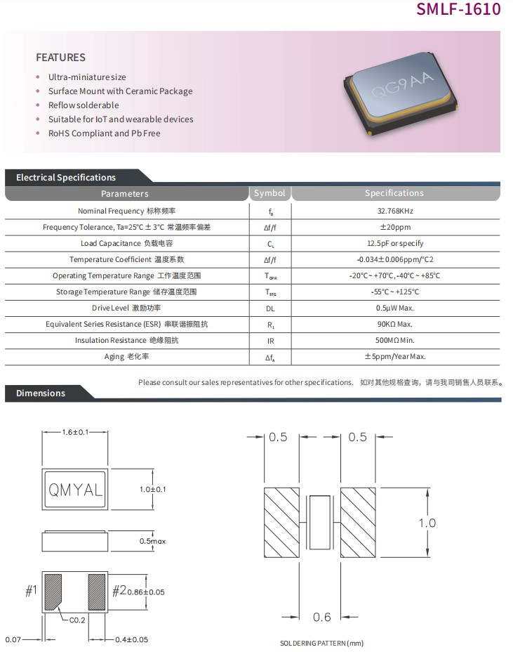 Interquip應(yīng)達(dá)利晶振,SMLF-1610,32.768KHz晶振,6G儀器儀表晶振,超小型晶振,兩腳貼片晶振,參數(shù)表