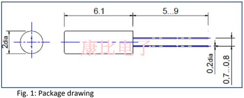 直徑僅為2mm的微型溫度傳感器晶體RKTV206允許高分辨率的溫度精確測量.這是一種特殊設計的32.768K音叉晶體,諧振頻率在32kHz至36kHz范圍內,溫度系數約為-51.8ppm/K@25℃.對于參考晶體RKOV206,通過使用外差原理,總溫度系數可以增加>50倍.
