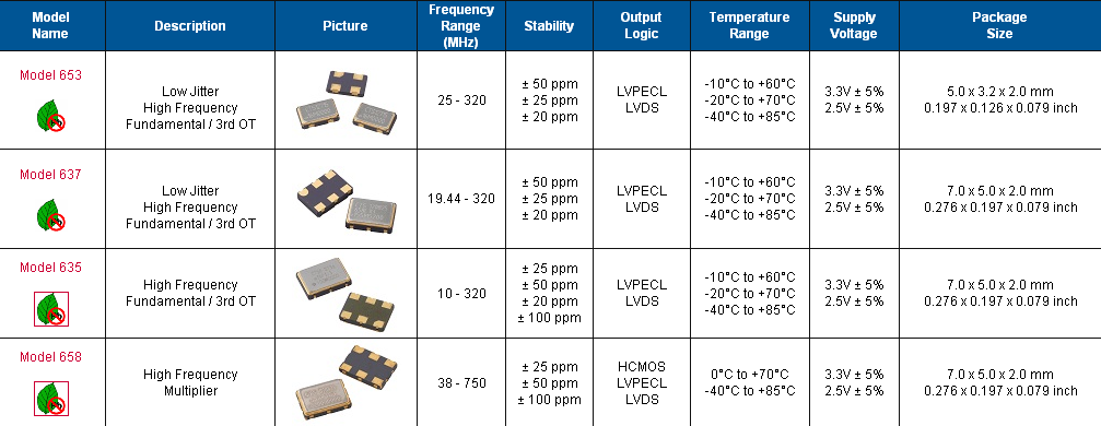 | 頻率公差@ 25°C | ±10ppm, ±15ppm, ±20 ppm, ±30 ppm, ±50 ppm | ||||