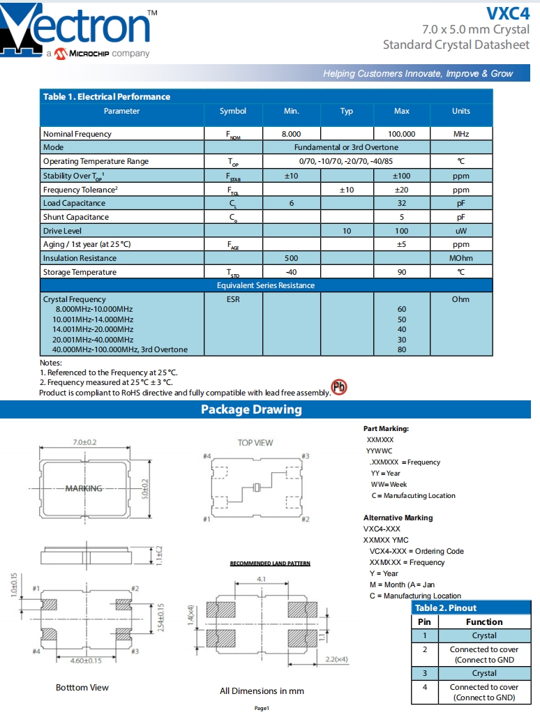 用于JEDEC J-STD-020D.01回流條件的耐熱可用性需個別判斷。請聯系我們以便獲取相關信息。Vectron晶振,VXC4晶振,7050mm晶振.