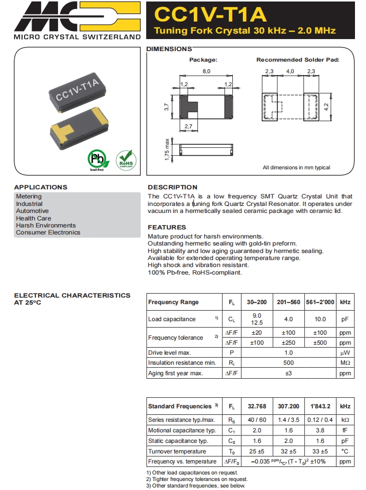 | CC1V-T1A-307.20kHz-4pF-100PPM-TC-QC | Micro晶振 | 晶體 307.200 kHz 4.0 pF 100 PPM -55/+125C |