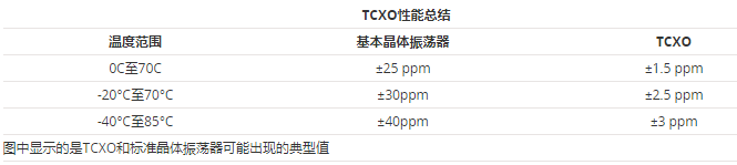 溫度的影響在很大程度上是可重復(fù)和可定義的.因此,可以使用溫度補償晶體振蕩器TCXO來補償許多效應(yīng).典型或預(yù)期性能水平的典型比較如下表所示: