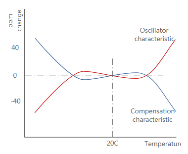 補償網(wǎng)絡(luò):補償網(wǎng)絡(luò)是整個系統(tǒng)運行的關(guān)鍵.上面可以看到有源晶振的溫度頻率響應(yīng)的近似曲線.實際曲線可以近似以3階多項式表達(dá)式的形式表示,盡管更精確的表示考慮了一些非線性并且計算得接近5階多項式.補償網(wǎng)絡(luò)需要檢測溫度并產(chǎn)生與此相反的電壓.