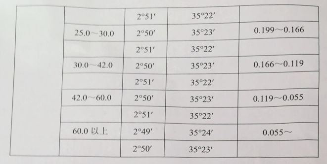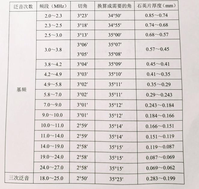 表3.6.1各頻段石英晶振晶片切角及換算成所需角度表
