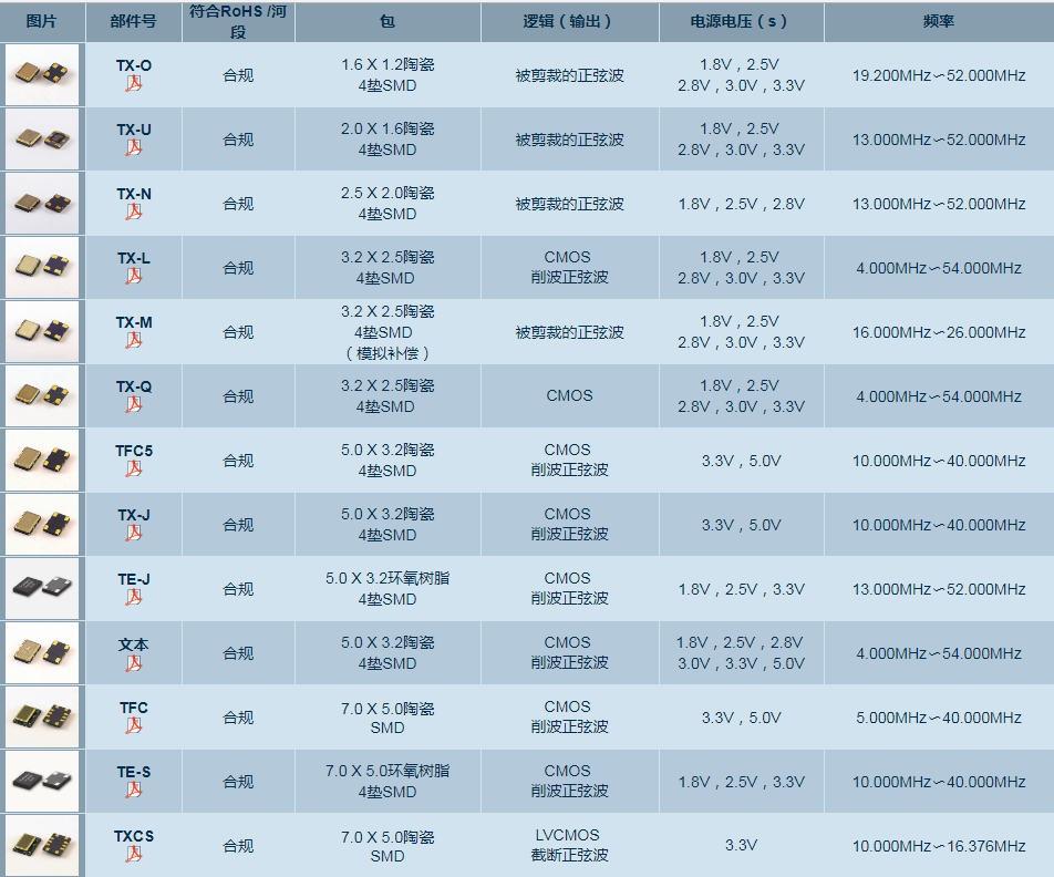 更多>>Transko晶振集團新系列高穩定性溫補晶振型號尺寸詳情表